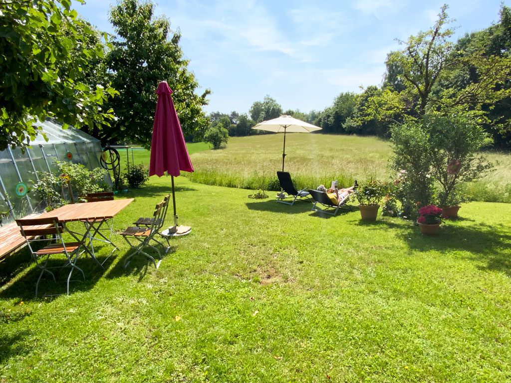 Großer Garten mit Liegewiese