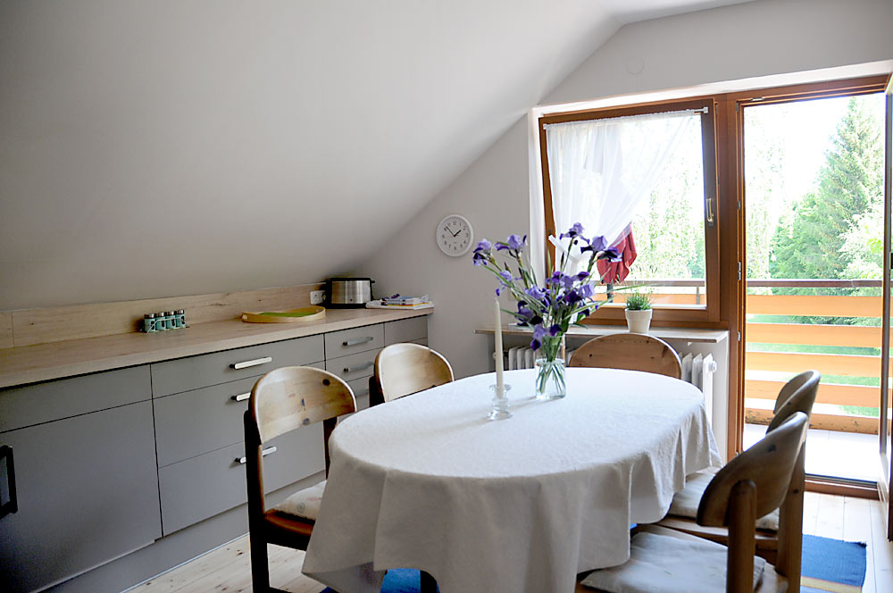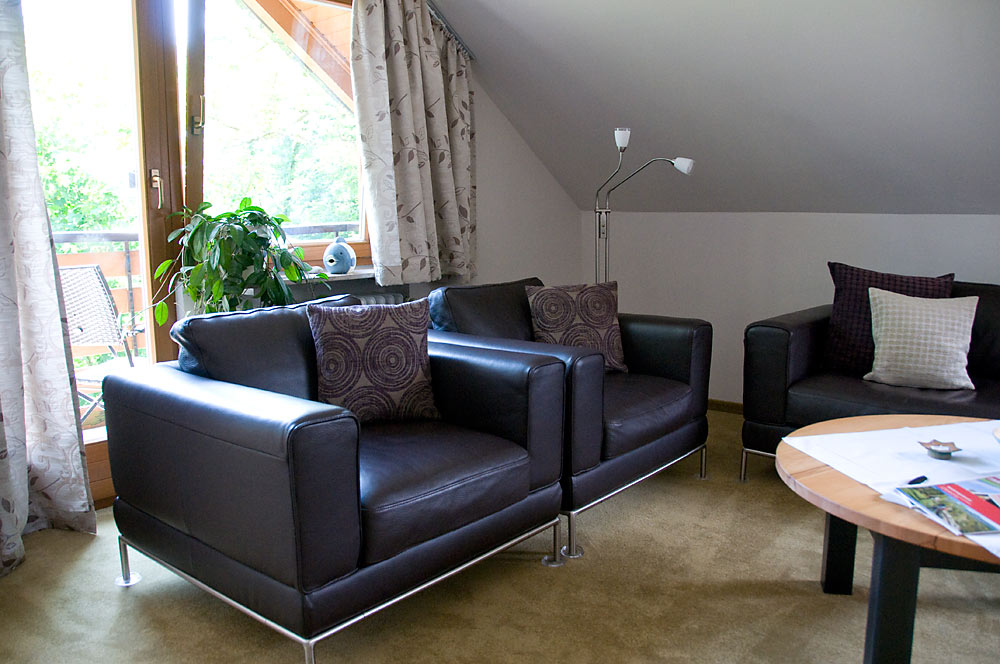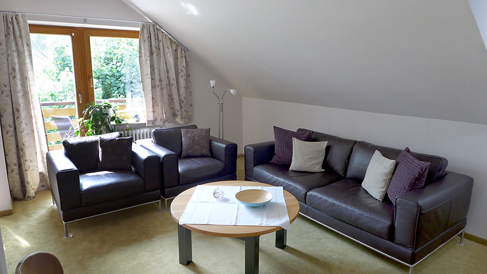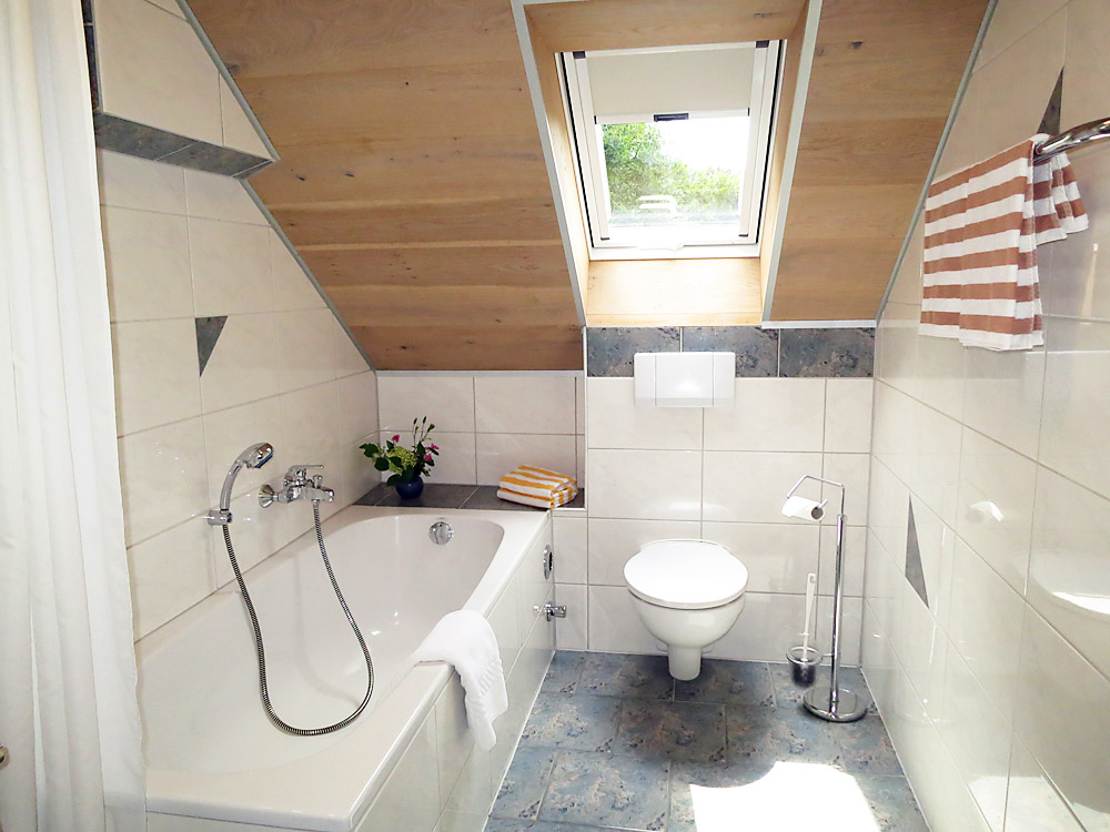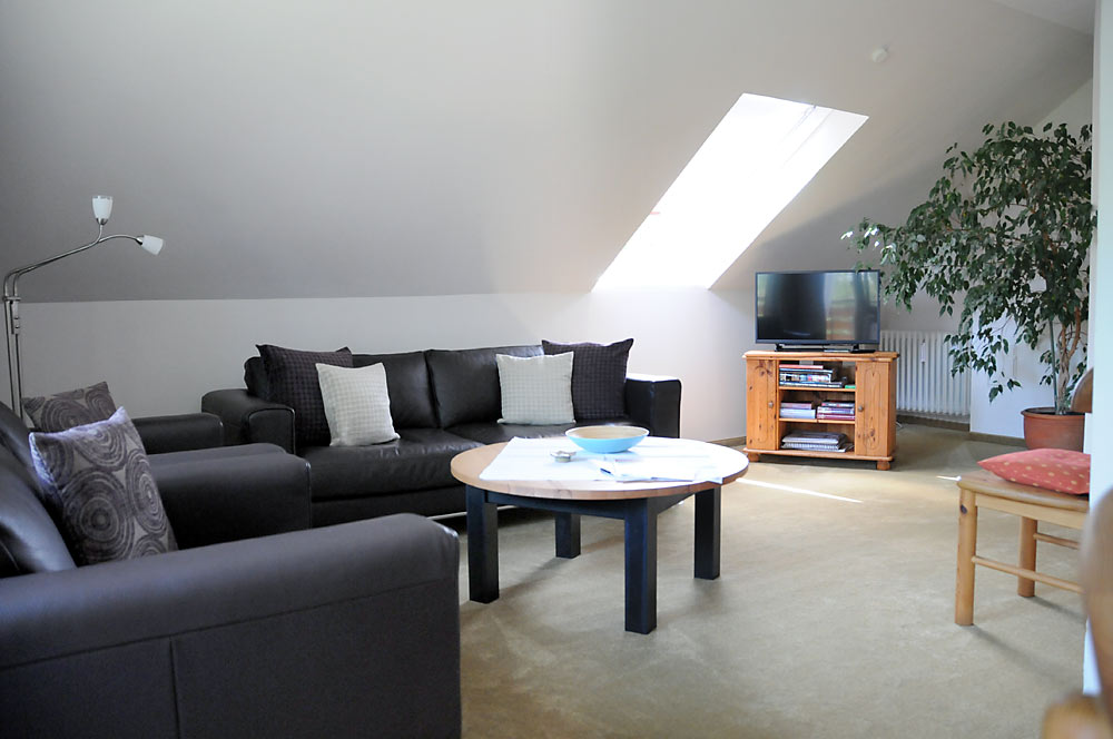 FeWo 6 im Dachgeschoß ca. 68 m² für 2 – 5 Personen Hier finden Sie reichlich Platz für die ganze Familie. Auf dem Balkon die Südsonne genießen.